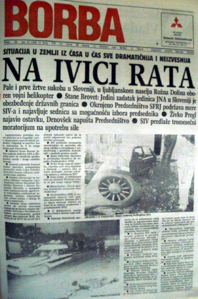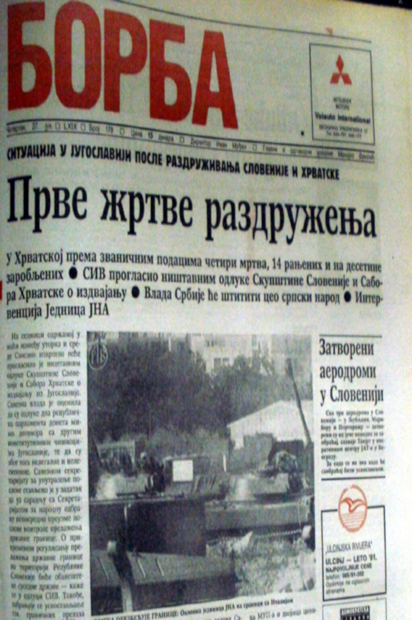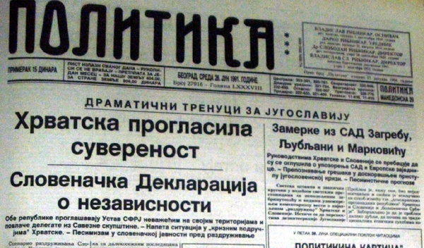 Naslovna fotografija: Naslovna strana lista „Politika“, 27. jun 1991.
