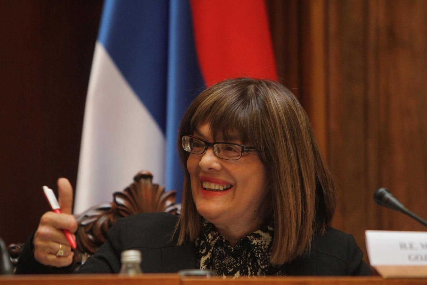 'Ultimatume ćete nekom drugom ispostavljati, ali predsedniku Narodne skupštine Republike Srbije nećete, to da znate. To nije demokratski manir, a i mi smo na istoj listi bili, poslaničkoj. Ultimatume postavljajte nekome drugome. Pored živog predsednika… Pa, ne morate da slušate, valjda ste recitaciju svoju izgovorili, pa vam je sada lakše, ali bih vas zamolila da slušate ako nekog vređate. Mene ste uvredili i uvredili ste poslanike i dobar deo Srbije, jer ste rekli da smo mi društvo koje zahvatila fašizacija. Strašne stvari ste izgovorili, poslaniče. (...) Znači, pored živog predsednika Administrativnog odbora, ja neću zakazivati nikakve sednice, pogotovo ne pod ultimatumom, a na vama je da upotrebite sve vaše veze koje ste rekli, kao partija, da ucenite Narodnu skupštinu Republike Srbije i samu državu. Ali, očekivala sam da kada govorite o fašizaciji da se jasno ogradite od jučerašnjih izjava vašeg koalicionog partnera, Sulejmana Ugljanina. Jasno da se ogradite i da raskinete koaliciju sa njim na lokalnom nivou. I ako vi dajete meni ultimatum, evo dajem i ja vama ultimatum.'